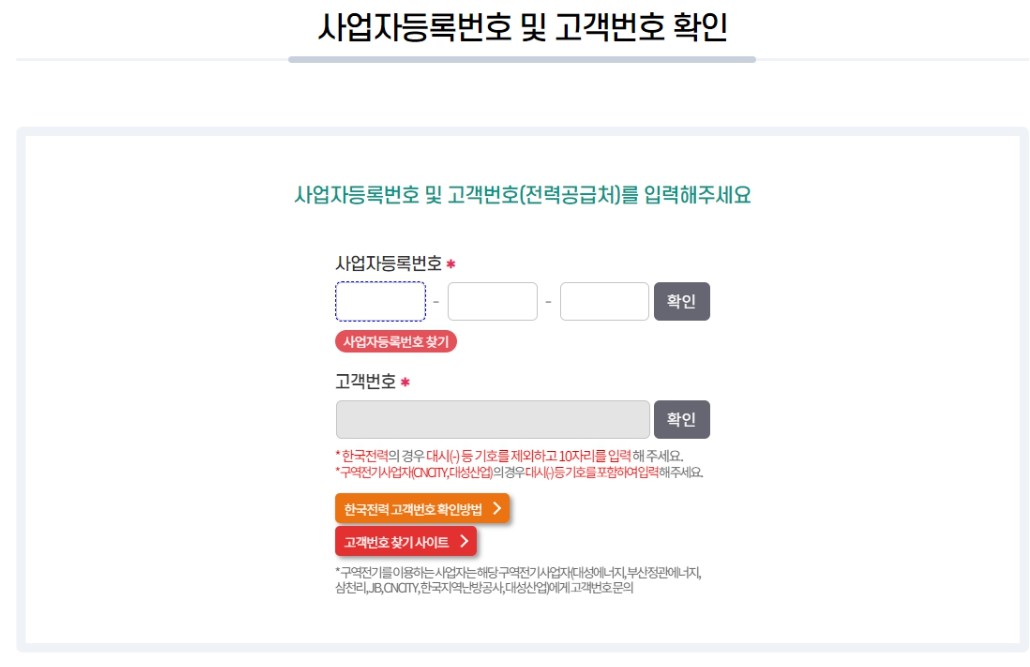 신청자의 사업장에서 사용하는 전기는 주거용이 아닌 비주거용(사업자용) 전기 요금을 납부하고 있어야 합니다.