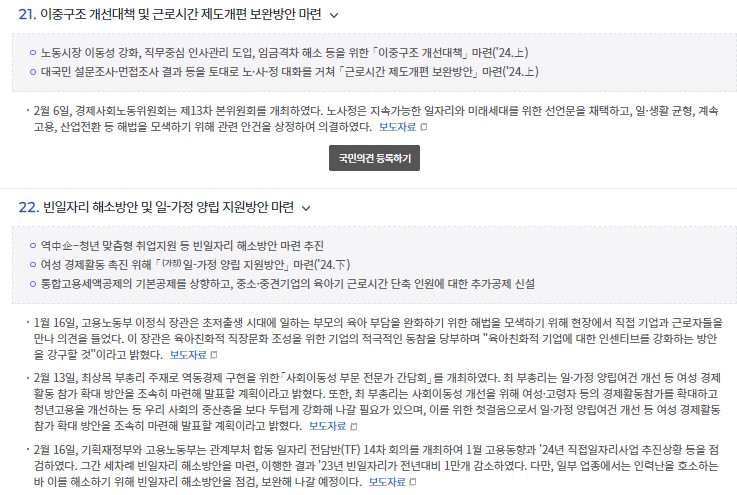 국민 참여 페이지에서 직접 의견을 제출하거나, 다른 국민들의 의견을 확인합니다.