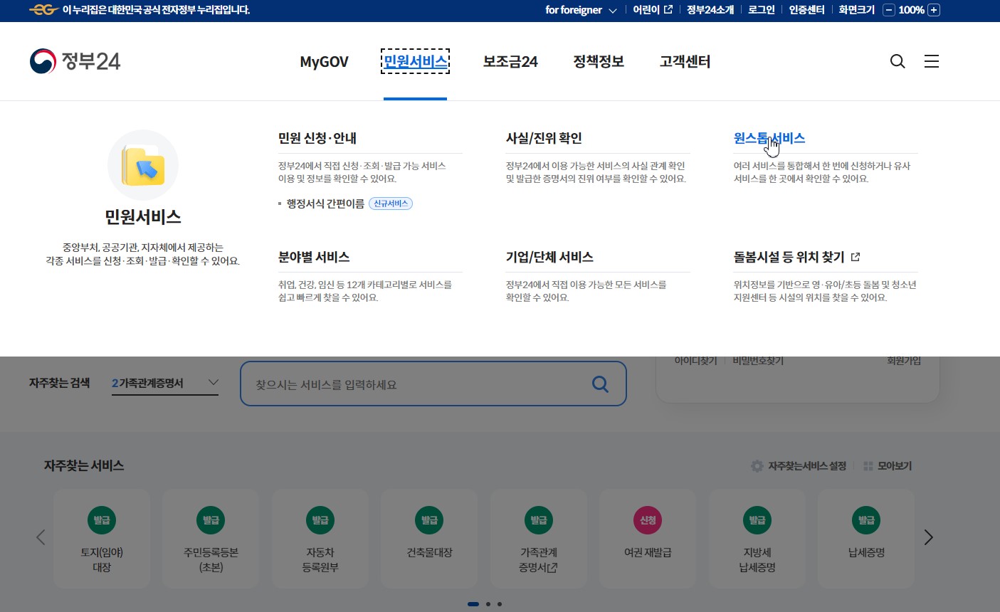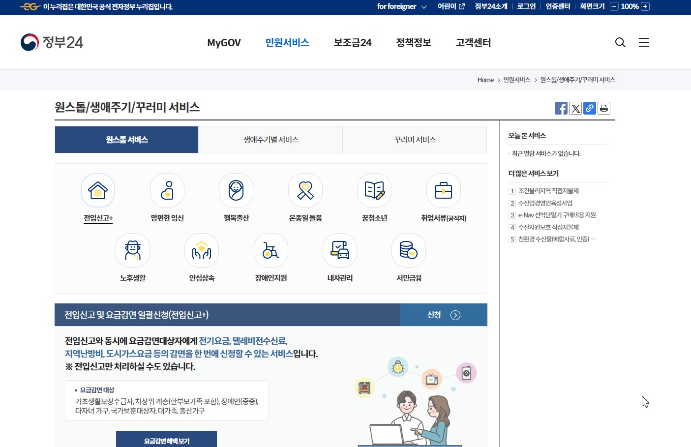 전입신고 | 원스톱/생애주기/꾸러미 서비스 | 정부24